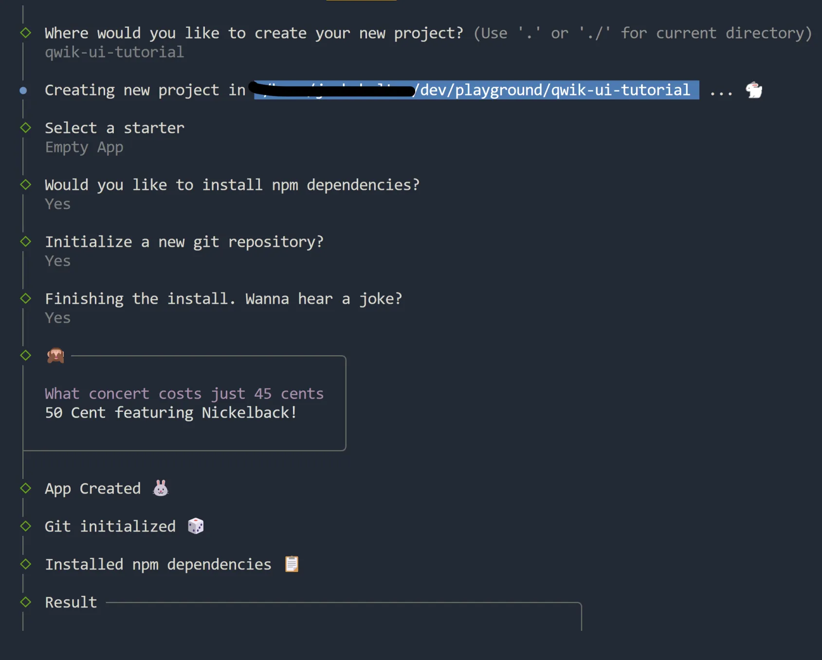Let's select the empty app option in the CLI to keep it simple. And remember, choosing the dad joke is not optional - it's mandatory! We have a highly sophisticated Dad Joke Detection System (DJDS) in place, so we'll know if you didn't!
